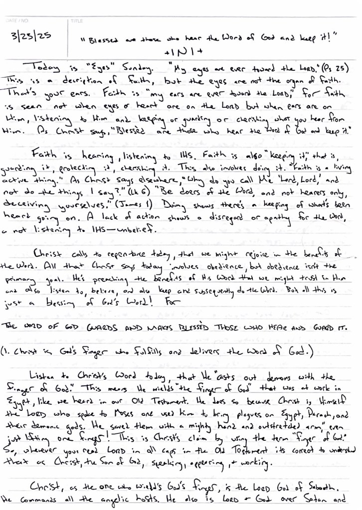 March 23, 2025Rev. Aaron T. FenkerLeave a Comment on Lent 3—Oculi 2025 (Lk 11:14–28) Lent 3—Oculi 2025 (Lk 11:14–28) Photo by Brina Blum on Unsplash Audio: iTunes | Spotify Share this: Click to share on X (Opens in new window) X Click to share on Facebook (Opens in new window) Facebook Like Loading... Related