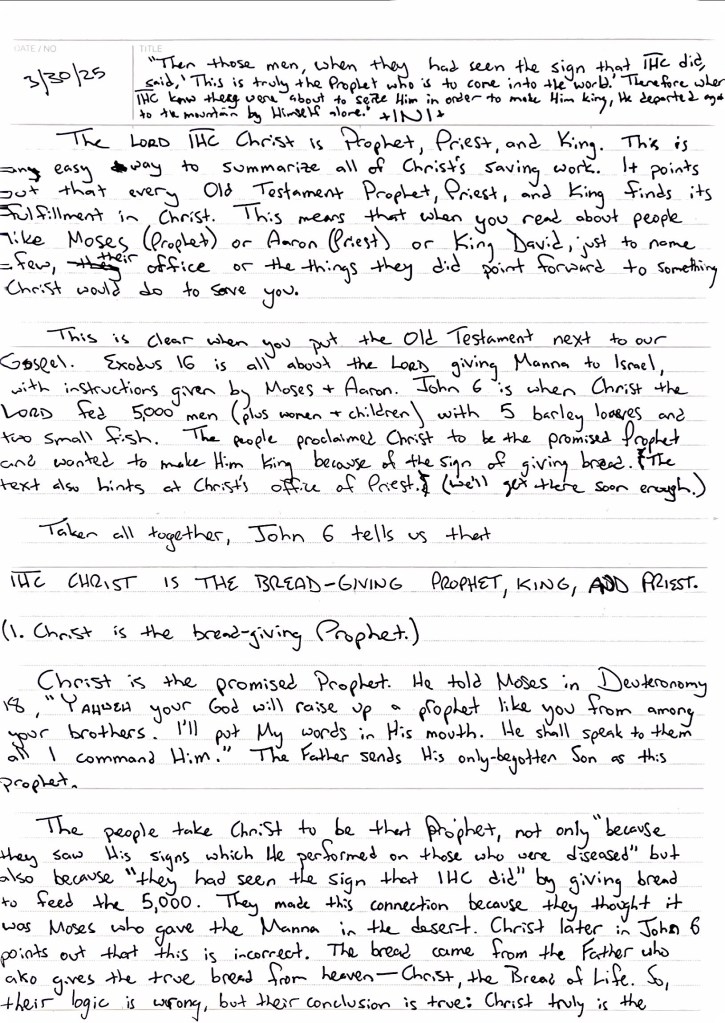 March 30, 2025April 13, 2025Rev. Aaron T. FenkerLeave a Comment on Lent 4—Laetare 2025 (Jn 6,1–15) Lent 4—Laetare 2025 (Jn 6,1–15) Artwork by FullofEyes Audio: iTunes | Spotify IHS CHRIST IS THE BREAD-GIVING PROPHET, KING, AND PRIEST. Share this: Click to share on X (Opens in new window) X Click to share on Facebook (Opens in new window) Facebook Like Loading... Related
