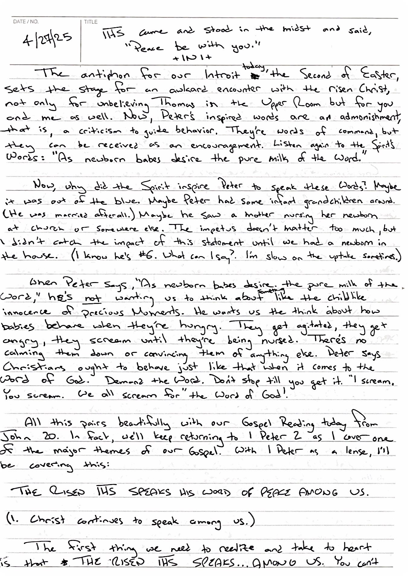 April 27, 2025Rev. Aaron T. FenkerLeave a Comment on Easter 2—Quasimodo Geniti 2025 (Jn 20, 19–31; 1 Pt Easter 2—Quasimodo Geniti 2025 (Jn 20, 19–31; 1 Pt Photo by Jessica Hearn on Unsplash Audio: iTunes | Spotify Share this: Click to share on X (Opens in new window) X Click to share on Facebook (Opens in new window) Facebook Like Loading... Related