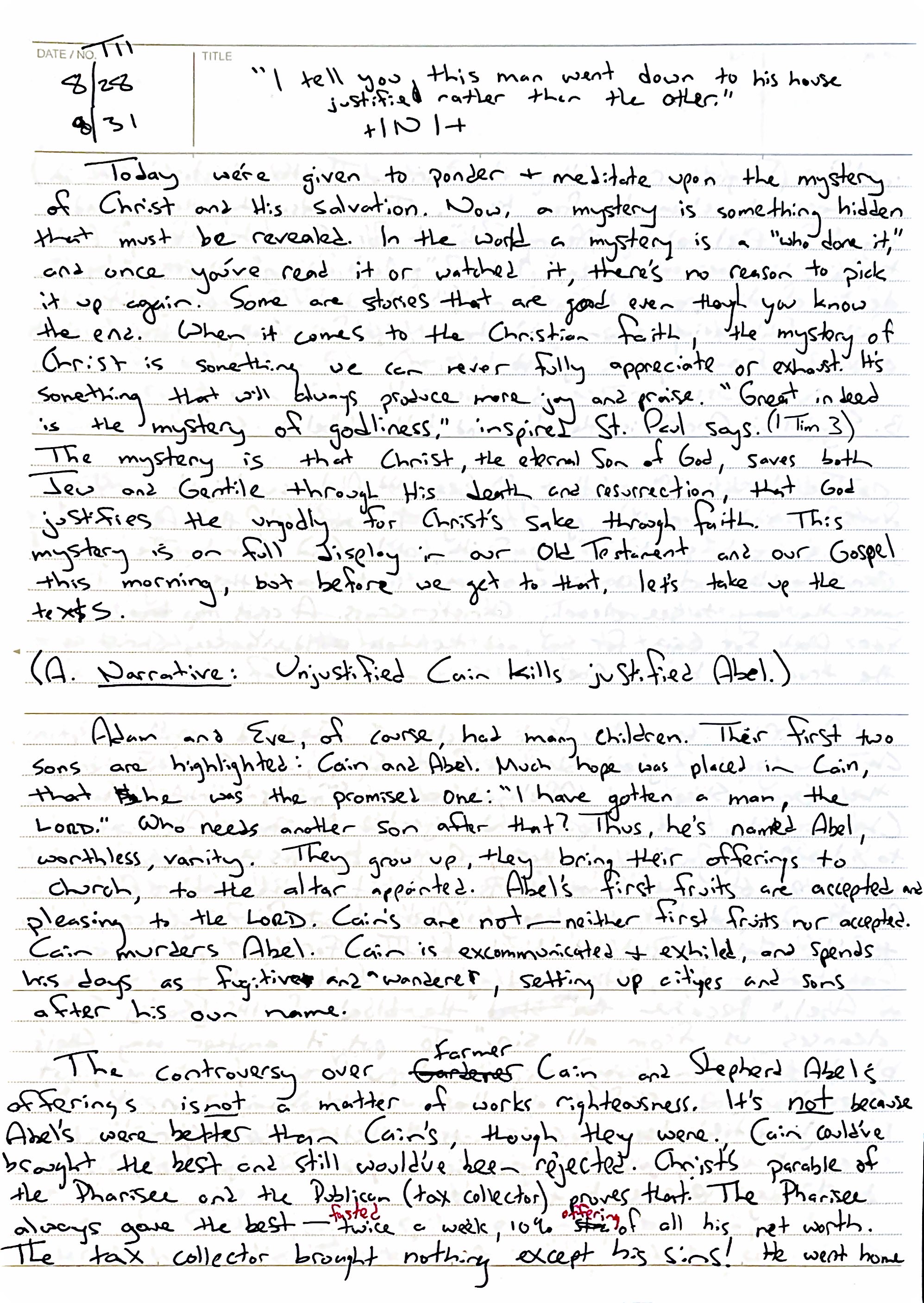 August 31, 2025December 4, 2025Rev. Aaron T. FenkerLeave a Comment on Trinity 11 2025 (Gen 4, 1–15; Lk 18, 9–14) Trinity 11 2025 (Gen 4, 1–15; Lk 18, 9–14) Artwork by FullofEyes Audio: iTunes | Spotify Share this: Click to share on X (Opens in new window) X Click to share on Facebook (Opens in new window) Facebook Like Loading... Related
